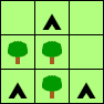 This square must be grass as the tree next to it already has its tent.