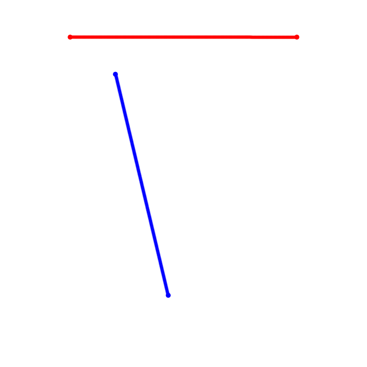 Are the red pair and blue pair of dots the same distance apart? Click the image to see [1 / 2].