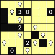 - A number in a square tells you how many bulbs surround that square, but not diagonally.