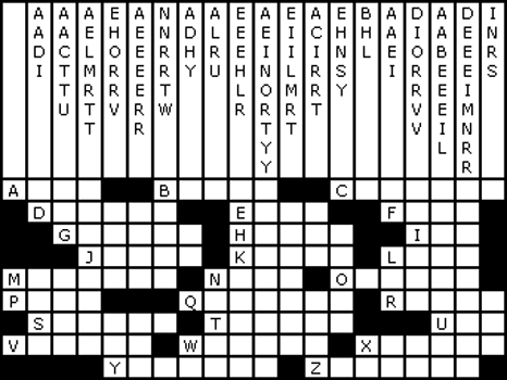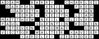 Below is a grid which should contain boy's names. The missing letters for a particular column are listed at the top of that column. Can you 'drop' the missing letters in and complete the grid?