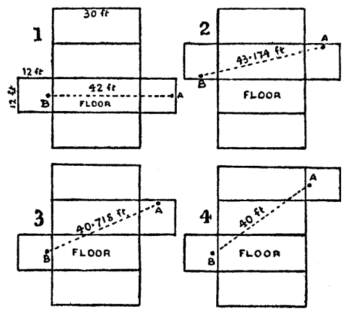 distance = 1 + 30 + 11 = 42 feet.