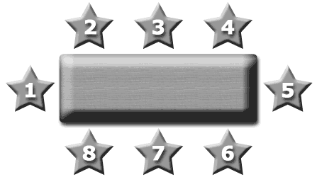 Seat 1 is next to Seat 2 and Seat 8, etc. Seat 5 is across from Seat 1, and Seat 7 is across from Seat 3, etc. Seat 2 is a higher seat number than Seat 1, etc.