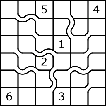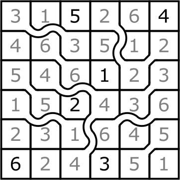 Complete the grid such that every row and column contains the digits 1 to 6.