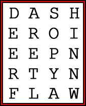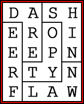 Add lines to this grid and create five areas that each have 4 letters, to spell five 4-letter words.