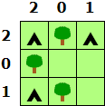 - A tent can only be found horizontally or vertically next to a tree.